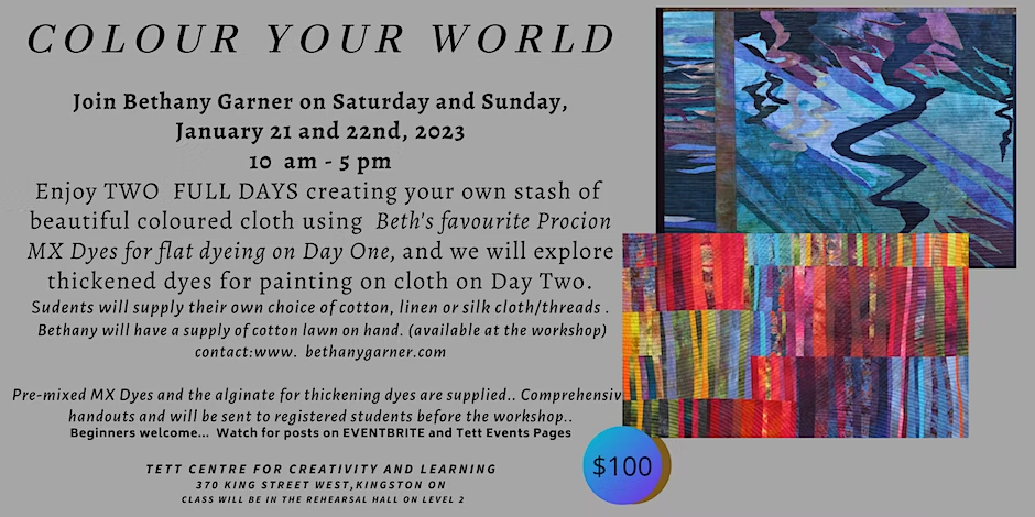 Beth would love to chat with each of you as you register, so you may share the type of work you are planning to do in the retreat. Please email at bethanygarner.art@gmail.com or drop by Bethany's studio in the Creativity Studios at the Tett Centre (2nd Floor/Middle Level).